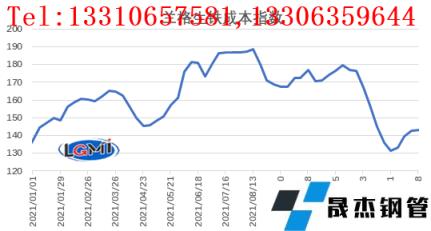 2022年1月份生鐵成本指數為139.7點,較上月下降5.1%。同期,綜合厚壁鋼管價格指數小幅回落,月均值為5067元/噸,較上月下降0.8%;1月份成本降幅大于厚壁鋼管均價降幅,可見1月份鋼企盈利空間有所改善。
