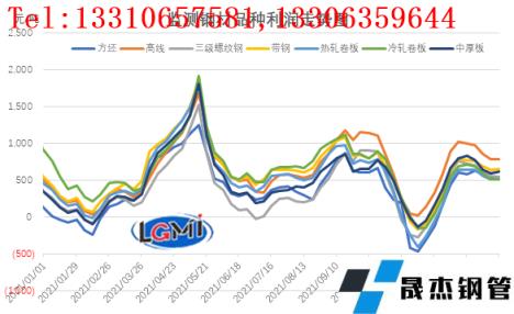 在前期焦炭價格下跌帶動下,以4周原料庫存周期測算,2022年1月份成本繼續下行,而鋼價跌幅相對較弱,各品種毛利呈現回升狀態。研究中心測算數據顯示,鋼坯的月均毛利改善幅度最大,為232元/噸;改善最小的品種是高線,為88元/噸;其他品種毛利改善區間在93-179元/噸。