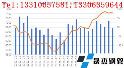 從海外厚壁無縫鋼管產量來看,呈現同比繼續回升局面。研究中心監測數據顯示,2024年2月份,中國以外全球其他地區產量為6760萬噸(詳見圖3),同比增長8.5%,增速較上月回升0.7個百分點。