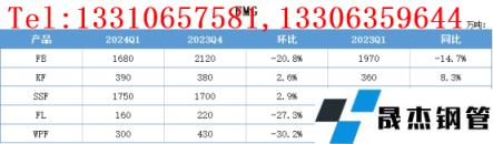 FB第一季度產(chǎn)量1680噸,環(huán)比下降20.8%,同比下降14.7%;KF第一季度產(chǎn)量390噸,環(huán)比上升2.6%,同比上升8.3%;SSF第一季度產(chǎn)量1750噸,環(huán)比上升2.9%,同比上升6.7%;FL第一季度產(chǎn)量160噸,環(huán)比下降27.3%,同比下降27.3%;WPF第一季度產(chǎn)量300噸,環(huán)比下降30.2%,同比下降31.8%.