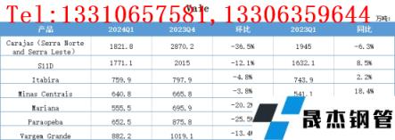 Vale公布2024年第一季度鐵礦石產(chǎn)量報(bào)告,具體情況如下: