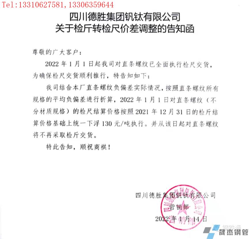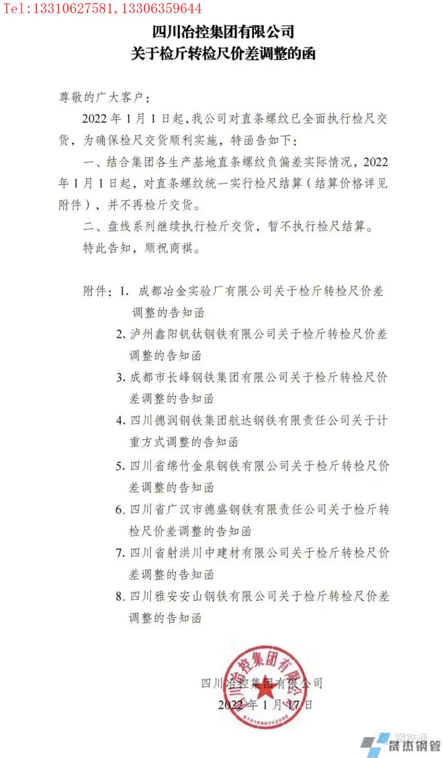 免責(zé)聲明:本網(wǎng)站(山東聊城晟杰無縫鋼管廠www.yztongfa.com)刊載的“四川多家鋼企發(fā)布檢斤轉(zhuǎn)檢尺價差調(diào)整通知”等均源于網(wǎng)絡(luò),版權(quán)歸原作者所有,且僅代表原作者觀點,本文所載信息僅供參考。轉(zhuǎn)載僅為學(xué)習(xí)與交流之目的,如無意中侵犯您的合法權(quán)益,請及時聯(lián)系刪除。本網(wǎng)站刊登此篇文章并不意味著本站贊同其觀點或證實其內(nèi)容的真實性,我們不對其科學(xué)性、嚴(yán)肅性等作任何形式的保證。如果侵犯了您的版權(quán),請盡快聯(lián)系我們予以撤銷,謝謝合作!