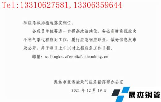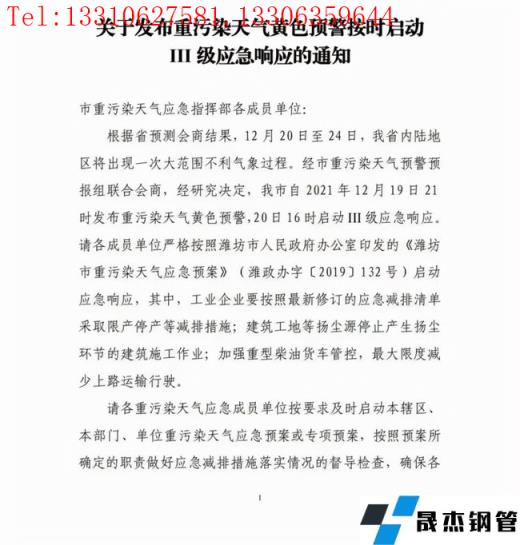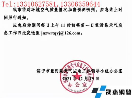 免責聲明:本網站(山東聊城晟杰無縫鋼管廠www.yztongfa.com)刊載的“新一輪“停工令”再發!涉及5省20市!”等均源于網絡,版權歸原作者所有,且僅代表原作者觀點,本文所載信息僅供參考。轉載僅為學習與交流之目的,如無意中侵犯您的合法權益,請及時聯系刪除。本網站刊登此篇文章并不意味著本站贊同其觀點或證實其內容的真實性,我們不對其科學性、嚴肅性等作任何形式的保證。如果侵犯了您的版權,請盡快聯系我們予以撤銷,謝謝合作!