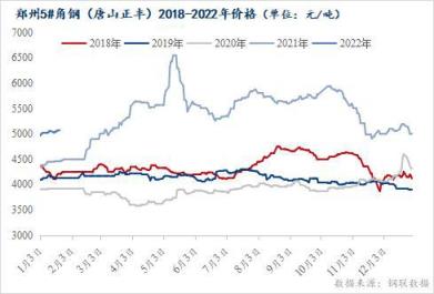 從近五年價(jià)格來(lái)看,2021年整體價(jià)格較往年明顯抬升,以鄭州5#角鋼(唐山正豐)為例,2021年均價(jià)較2020同期上升36.96%,最高點(diǎn)為五月份6550元/噸,比2020年十二月份峰值高1950元/噸。進(jìn)入本月,河南地區(qū)型鋼價(jià)格小幅上漲,1月份雖然河南多地疫情頻發(fā),交通運(yùn)輸管控加嚴(yán),下游采購(gòu)進(jìn)度受限,整體需求表現(xiàn)不佳,但受到原材料鐵礦及環(huán)保政策等因素的影響,價(jià)格趨強(qiáng)運(yùn)行。截止目前,河南疫情得以有效控制,考慮到春節(jié)假期過(guò)后,下游逐步復(fù)工,需求好轉(zhuǎn),預(yù)計(jì)市場(chǎng)價(jià)格有一定上漲空間。