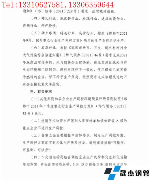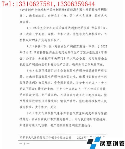 免責(zé)聲明:本網(wǎng)站(山東聊城晟杰無縫鋼管廠www.yztongfa.com)刊載的“限產(chǎn)50%!河北一地再發(fā)鋼企限產(chǎn)令!即日起至月底!”等均源于網(wǎng)絡(luò),版權(quán)歸原作者所有,且僅代表原作者觀點(diǎn),本文所載信息僅供參考。轉(zhuǎn)載僅為學(xué)習(xí)與交流之目的,如無意中侵犯您的合法權(quán)益,請及時(shí)聯(lián)系刪除。本網(wǎng)站刊登此篇文章并不意味著本站贊同其觀點(diǎn)或證實(shí)其內(nèi)容的真實(shí)性,我們不對其科學(xué)性、嚴(yán)肅性等作任何形式的保證。如果侵犯了您的版權(quán),請盡快聯(lián)系我們予以撤銷,謝謝合作!