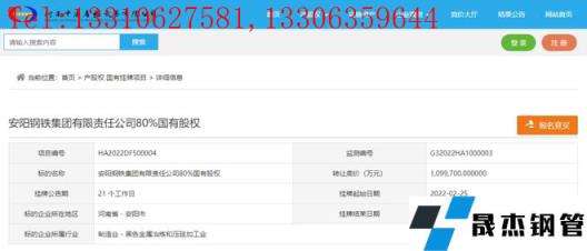 免責聲明:本網站(山東聊城晟杰無縫鋼管廠www.yztongfa.com)刊載的“混改倒計時!安鋼集團110億掛牌轉讓!二十余鋼企有接手資格?”等均源于網絡,版權歸原作者所有,且僅代表原作者觀點,本文所載信息僅供參考。轉載僅為學習與交流之目的,如無意中侵犯您的合法權益,請及時聯系刪除。本網站刊登此篇文章并不意味著本站贊同其觀點或證實其內容的真實性,我們不對其科學性、嚴肅性等作任何形式的保證。如果侵犯了您的版權,請盡快聯系我們予以撤銷,謝謝合作!