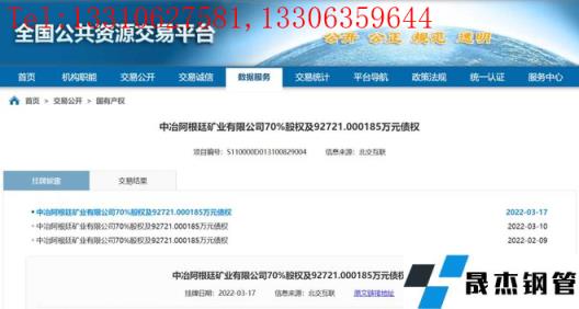 免責聲明:本網站(山東聊城晟杰無縫鋼管廠www.yztongfa.com)刊載的“6.4億!中冶股份轉讓一鐵礦70%股權及9.27億債權!”等均源于網絡,版權歸原作者所有,且僅代表原作者觀點,本文所載信息僅供參考。轉載僅為學習與交流之目的,如無意中侵犯您的合法權益,請及時聯系刪除。本網站刊登此篇文章并不意味著本站贊同其觀點或證實其內容的真實性,我們不對其科學性、嚴肅性等作任何形式的保證。如果侵犯了您的版權,請盡快聯系我們予以撤銷,謝謝合作!