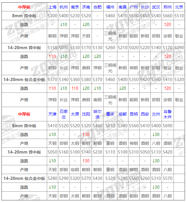 今日型、板材共9家鋼廠調(diào)價發(fā)布,其中: