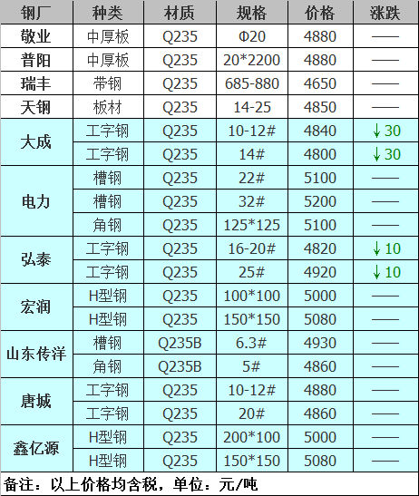 1月18日秦皇島安豐廢鋼下調(diào)20元:圓鋼頭沖豆3680模具鋼大-法蘭片、50厚上重型3660大槽鋼大H型鋼火車(chē)大梁3580,無(wú)油汽車(chē)大梁、汽車(chē)弓子3460,2厚馬碲鐵3460冷板小料3480三角矽鋼片3480不含稅。