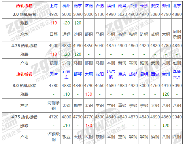 全國24個主要市場3.0 熱軋板卷平均價格4915元/噸,較上個交易日下調7元/噸。