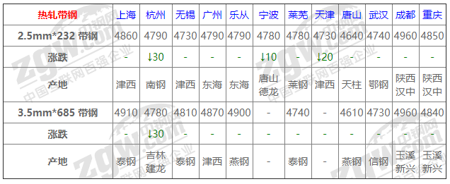 全國10個主要市場3.5mm*685 帶鋼平均價格4815元/噸,較上個交易日下調5元/噸。