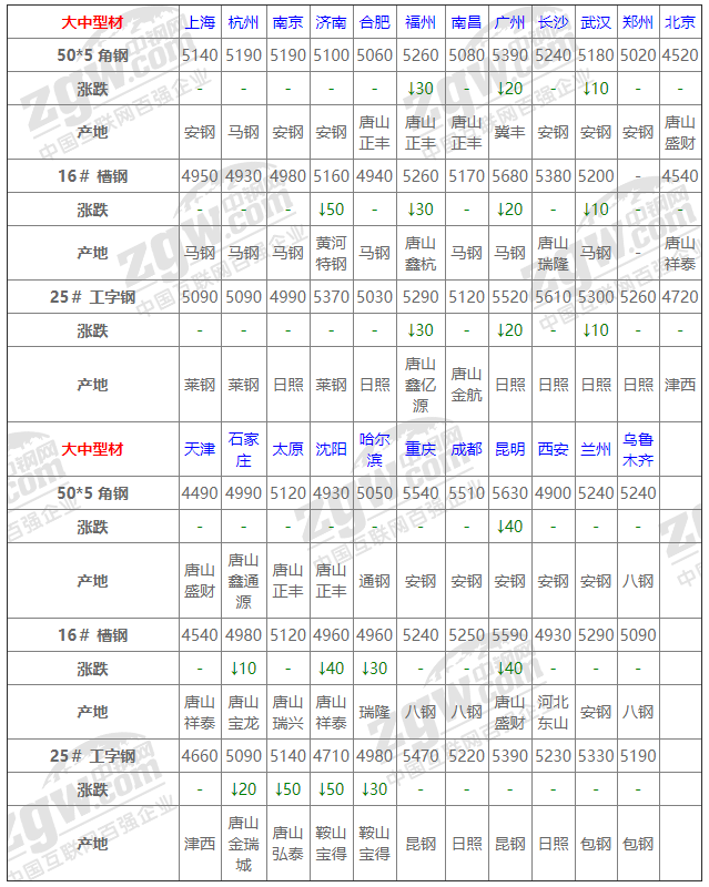 全國23個主要市場25# 工字鋼平均價格5165元/噸,較上個交易日下調9元/噸。