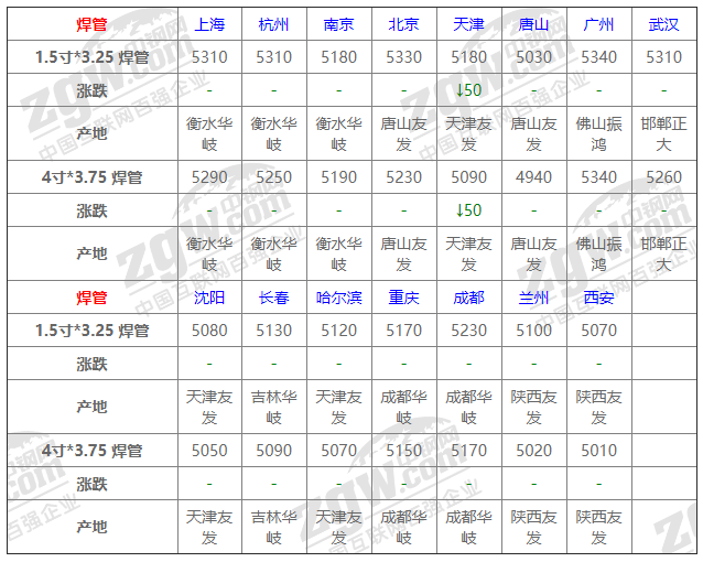 全國15個主要市場1.5寸*3.25 焊管平均價格5193元/噸,較上個交易日下調3元/噸。