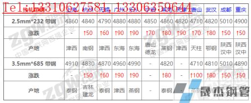 全國12個主要市場2.5mm*232 帶鋼平均價格4852元/噸,較上個交易日上調(diào)65元/噸。