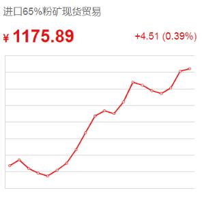 1月21日,跟據(jù)今日鐵礦公布的鐵礦石價格來看,進口65%粉礦現(xiàn)貨貿(mào)易價格1175.89元/噸,較前一個交易日上漲4.51,漲幅0.39%;進口54%粉礦到岸價格161.57美元/噸,較前一個交易日上漲1.45,漲幅0.91%;國產(chǎn)65%鐵精礦價格1009.72,元/噸,較前一個交易日上漲1.42,漲幅0.14%。