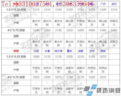 全國(guó)15個(gè)主要市場(chǎng)1.5寸*3.25 焊管平均價(jià)格5199元/噸,較上個(gè)交易日價(jià)格相同