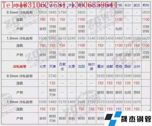 全國(guó)23個(gè)主要市場(chǎng)1.0mm 冷軋板卷平均價(jià)格5596元/噸,較上個(gè)交易日上調(diào)49元/噸。
