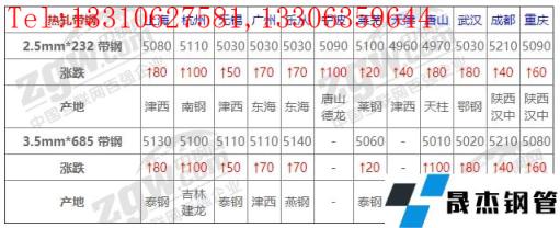 全國(guó)12個(gè)主要市場(chǎng)2.5mm*232 帶鋼平均價(jià)格5061元/噸,較上個(gè)交易日上調(diào)66元/噸。