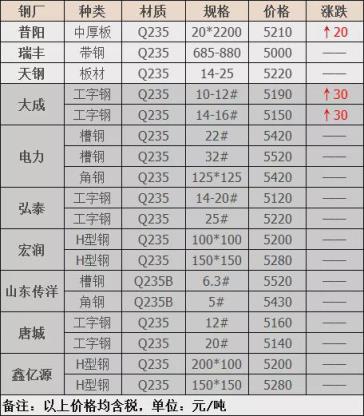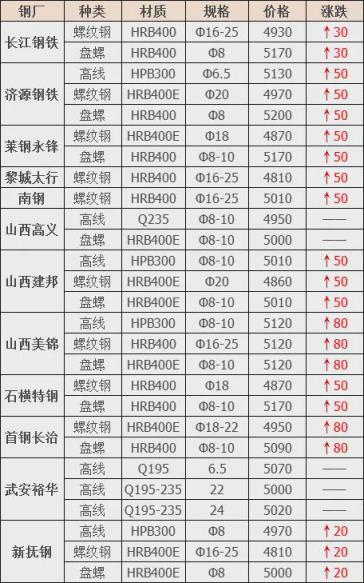 9日河北秦皇島宏興執行:精品鋼3810,優質鋼3790,重廢A3710,重廢B3650,矽鋼片3610(三角),冷板碎料3610(2個厚),矽鋼片破碎料3610(球團狀),矽鋼片破碎料3460(片狀),鋼筋壓塊3450,花鐵壓塊3450,普銷二級2950~3000,普銷一級3050~3080,小鋼刨花3170~3200,大鋼刨花3260~3280,不含稅,單位:元/噸。