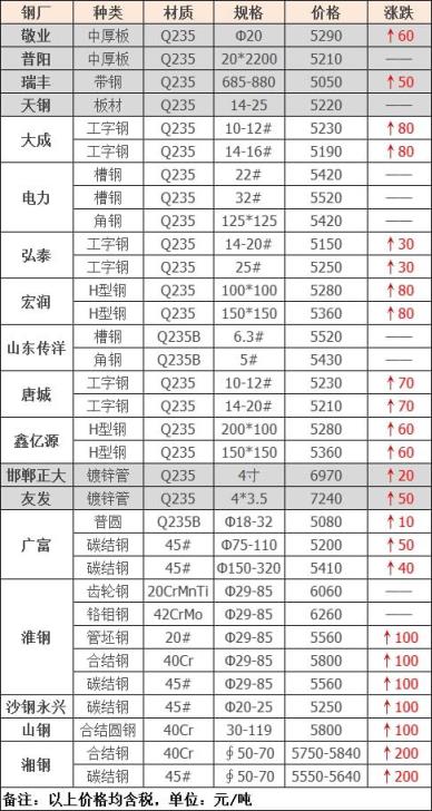 2月11日河北國義漲40,坯子頭3870,小鐵餅3870,鋼筋頭3870,薄邊角料3380,邊角料3450,輥剪料3740,管子頭3240,20厚以上的廢鋼3820,絲杠3820,量大加價,不含稅,單位:元/噸。