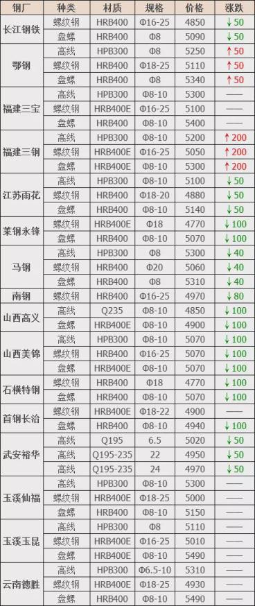 下調7家,占比63.7%,調價幅度20-70元/噸;