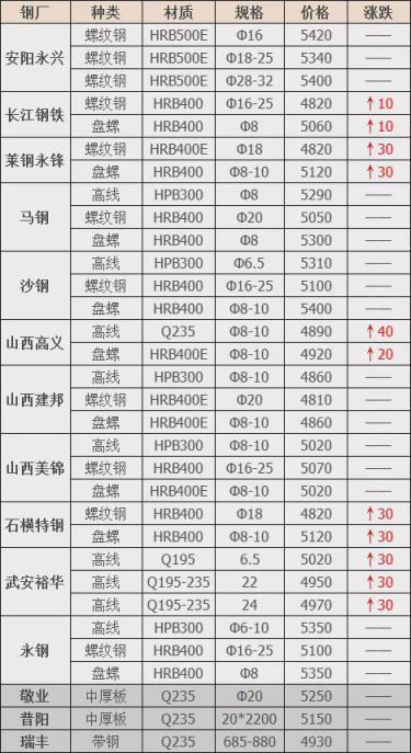 上調5家,占比33.3%,調價幅度10-40元/噸;