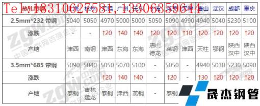 全國12個主要市場2.5mm*232 帶鋼平均價格5042元/噸,較上個交易日上調19元/噸。