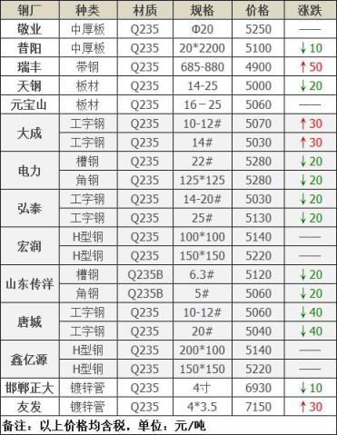 今日建、板材共10家無縫鋼管廠家調價發布,其中: