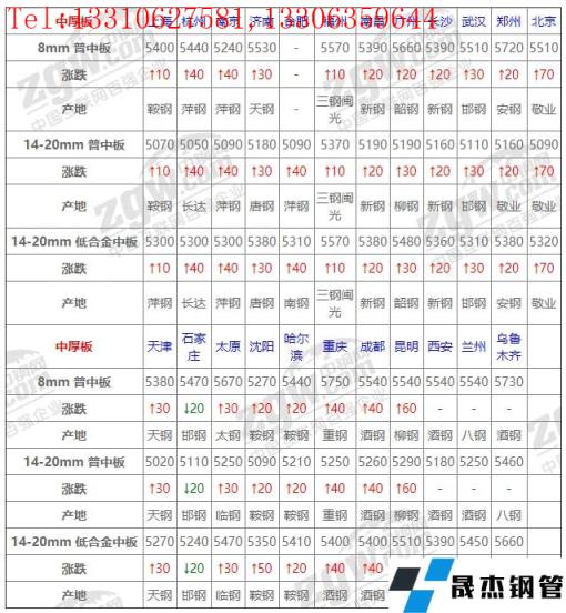 3月1日中厚板價(jià)格:以漲為主;