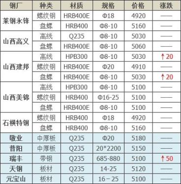3月25日安徽長江鋼鐵廢鋼采購價格漲40-50:鋼筋切粒及沖子4030優重4050優重一4030沖壓料4010沖壓料一3970工業壓塊3990重廢4000精料3980中廢3950機生4000剪切料3900剪切小廢一型3810剪切小廢二型3700一級鋼刨花3720一級破碎料3890,含稅13%,單位:元/噸。