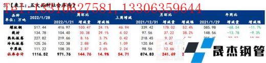 免責聲明:本網(wǎng)站(山東聊城晟杰無縫鋼管廠www.yztongfa.com)刊載的“解讀:聚焦鋼鐵產(chǎn)業(yè)數(shù)據(jù)(1月27日)—節(jié)前最后一周,最強雨雪襲來,需求停滯在即”等均源于網(wǎng)絡,版權歸原作者所有,且僅代表原作者觀點,本文所載信息僅供參考。轉載僅為學習與交流之目的,如無意中侵犯您的合法權益,請及時聯(lián)系刪除。本網(wǎng)站刊登此篇文章并不意味著本站贊同其觀點或證實其內容的真實性,我們不對其科學性、嚴肅性等作任何形式的保證。如果侵犯了您的版權,請盡快聯(lián)系我們予以撤銷,謝謝合作!