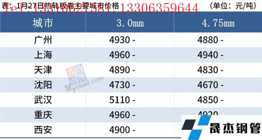 熱軋板卷:1月27日,全國24個主要城市4.75mm熱軋板卷均價4914元/噸,較上個交易日持平。隨著春節臨近,現貨市場商家逐步離市,市場已處于有價無市局面,工人已陸續返鄉,終端需求逐步停滯。受冬奧會限產抑制影響,節日期間無縫鋼管廠家高爐開工率存下調預期,供應量亦將繼續回落,節后庫存壓力尚可。綜合來看,預計28日熱軋板卷價格持穩運行。