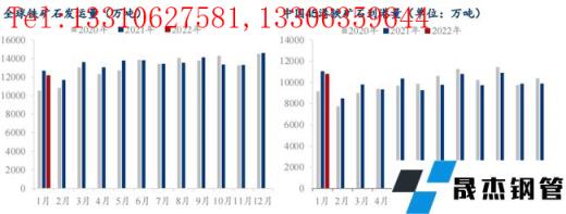 回顧一月鐵礦鐵礦基本面情況,遠端供應鐵礦石發運量在季末沖量后出現回落,巴西雨季的提前到來也進一步加重了供應端的減量;近端供應則表現相對強勢,由于時間周期影響中國鐵礦石到港量在一月份迎來了短期的高點;國產礦方面,隨著新一年的生產指標充裕以及礦山利潤高企,產量加速恢復,預計1月整體國內供應環比增加416萬噸。需求端來看,1月各地限產放松,無縫厚壁鋼管廠家積極復產,整體鐵水產量出現明顯增量,預計1月礦石需求環比增加約690萬噸,但是由于復產前補庫需求較大,疊加臨近春節無縫厚壁鋼管廠家需要往廠內加大提貨量提高廠內庫存,疏港環比上月增加1004萬噸。體現到庫存端,本月庫存總量(含礦山庫存、無縫厚壁鋼管廠家廠內庫存和壓港)增加約276萬噸,較上月累庫幅度收窄124萬噸,其中無縫厚壁鋼管廠家廠內庫存增加358萬噸而港口庫存下降325萬噸。