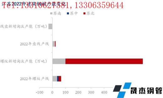 2022年江蘇產(chǎn)能整體呈現(xiàn)小幅增加的態(tài)勢(shì),具體來(lái)看,蘇南地區(qū)螺紋產(chǎn)能新增100萬(wàn)噸,淘汰30萬(wàn)噸,蘇中區(qū)域暫無(wú)新增產(chǎn)能,蘇北區(qū)域產(chǎn)能增幅明顯,其中螺紋新增產(chǎn)能600萬(wàn)噸;從生產(chǎn)條線(xiàn)來(lái)看,螺紋產(chǎn)線(xiàn)主要集中在蘇南、蘇北區(qū)域,蘇中區(qū)域占比較少,而盤(pán)線(xiàn)方面,主要是蘇南區(qū)域。整體2022年螺紋產(chǎn)線(xiàn)52條,同比新增5條,產(chǎn)能6504萬(wàn)噸,同比新增700萬(wàn)噸;盤(pán)螺產(chǎn)線(xiàn)25條,同比新增1條,淘汰1條,產(chǎn)能3520萬(wàn)噸,淘汰30萬(wàn)噸。