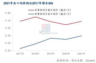 但中國芯片行業(yè)與歐美日相比存在較大差距,高端芯片高度依賴進口。據海關總署數據,我國2017年進口均價為0.69美元/個,出口均價為0.34美元/個,2021年進口均價為0.7美元/個,出口均價為0.5美元/個。從這個數據來看我國仍維持進口高端芯片,出口中低端芯片的過程。但2021年出口均價同比2017年增長44.71%,說明我國的半導體逐漸往高端芯片的生產靠近。國務院數據顯示,我國芯片自給率要在2025年達到70%,難度很大,“中國芯”道阻且艱。