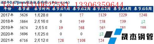 小編匯總近5年春節(jié)后四周彩涂板卷均價(jià)變化情況,以供參考。