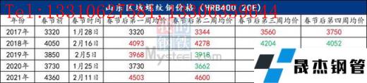 附:近五年山東建筑厚壁無縫鋼管春節均價走勢: