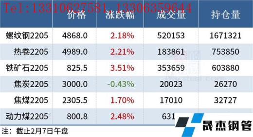 免責(zé)聲明:本網(wǎng)站(山東聊城晟杰無(wú)縫鋼管廠(chǎng)www.yztongfa.com)刊載的“2022年02月07日午報(bào):鋼價(jià)全線(xiàn)上漲,鐵礦石期貨漲逾3%”等均源于網(wǎng)絡(luò),版權(quán)歸原作者所有,且僅代表原作者觀點(diǎn),本文所載信息僅供參考。轉(zhuǎn)載僅為學(xué)習(xí)與交流之目的,如無(wú)意中侵犯您的合法權(quán)益,請(qǐng)及時(shí)聯(lián)系刪除。本網(wǎng)站刊登此篇文章并不意味著本站贊同其觀點(diǎn)或證實(shí)其內(nèi)容的真實(shí)性,我們不對(duì)其科學(xué)性、嚴(yán)肅性等作任何形式的保證。如果侵犯了您的版權(quán),請(qǐng)盡快聯(lián)系我們予以撤銷(xiāo),謝謝合作!