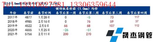小編匯總近5年春節(jié)后四周鍍鋅板卷均價變化情況,以供參考。