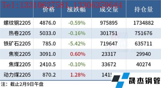 免責聲明:本網站(山東聊城晟杰無縫鋼管廠www.yztongfa.com)刊載的“2022年02月09日午報:鋼價多數上漲,鐵礦石期貨跌逾5%”等均源于網絡,版權歸原作者所有,且僅代表原作者觀點,本文所載信息僅供參考。轉載僅為學習與交流之目的,如無意中侵犯您的合法權益,請及時聯系刪除。本網站刊登此篇文章并不意味著本站贊同其觀點或證實其內容的真實性,我們不對其科學性、嚴肅性等作任何形式的保證。如果侵犯了您的版權,請盡快聯系我們予以撤銷,謝謝合作!