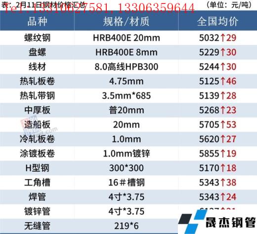 建筑厚壁無縫鋼管:2月11日,全國31個主要城市20mm三級抗震螺紋鋼均價5032元/噸,較上個交易日上漲29元/噸。短期來看,目前現(xiàn)貨市場仍然處于供需雙弱的格局,情緒面驅(qū)動價格上漲,同時當(dāng)前現(xiàn)貨市場庫存總量遠(yuǎn)低于去年同期。因此預(yù)計下周國內(nèi)建筑厚壁無縫鋼管價格或?qū)⒗^續(xù)趨強為主。