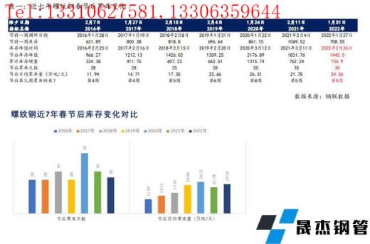 與螺紋鋼原因相對一致,2020年春節(jié)后累庫天數(shù)長達43天,節(jié)后第7周首次出現(xiàn)降庫趨勢。2016年至2019年,以及2021年,線材春節(jié)后累庫天數(shù)基本維持在21-35天,并在節(jié)后第3-5周首次出現(xiàn)降庫趨勢。依據(jù)建筑厚壁無縫鋼管品種屬性基本相似的慣例來看,2022年線材節(jié)后預計累庫天數(shù)也將達到30天左右,節(jié)后日均累庫9.72萬噸/天,同比2021年高24%左右,節(jié)后第4周達到峰值,庫存峰值同比低4%左右。