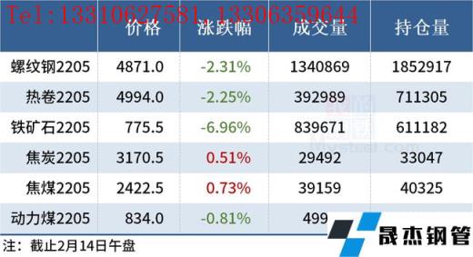 免責聲明:本網站(山東聊城晟杰無縫鋼管廠www.yztongfa.com)刊載的“2022年02月14日午報:鋼價多數下跌,鐵礦石期貨跌逾6%”等均源于網絡,版權歸原作者所有,且僅代表原作者觀點,本文所載信息僅供參考。轉載僅為學習與交流之目的,如無意中侵犯您的合法權益,請及時聯系刪除。本網站刊登此篇文章并不意味著本站贊同其觀點或證實其內容的真實性,我們不對其科學性、嚴肅性等作任何形式的保證。如果侵犯了您的版權,請盡快聯系我們予以撤銷,謝謝合作!