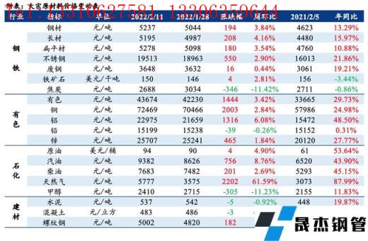 免責(zé)聲明:本網(wǎng)站(山東聊城晟杰無(wú)縫鋼管廠www.yztongfa.com)刊載的“周報(bào):大宗原材料價(jià)格周報(bào)(2.07-2.11)”等均源于網(wǎng)絡(luò),版權(quán)歸原作者所有,且僅代表原作者觀點(diǎn),本文所載信息僅供參考。轉(zhuǎn)載僅為學(xué)習(xí)與交流之目的,如無(wú)意中侵犯您的合法權(quán)益,請(qǐng)及時(shí)聯(lián)系刪除。本網(wǎng)站刊登此篇文章并不意味著本站贊同其觀點(diǎn)或證實(shí)其內(nèi)容的真實(shí)性,我們不對(duì)其科學(xué)性、嚴(yán)肅性等作任何形式的保證。如果侵犯了您的版權(quán),請(qǐng)盡快聯(lián)系我們予以撤銷(xiāo),謝謝合作!