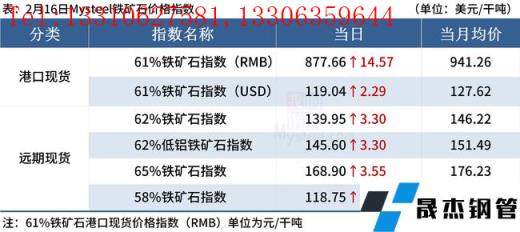 ◎ 2月16日,全國主港鐵礦石成交135萬噸,環比增214%;237家主流貿易商建材成交8.51萬噸,環比增82.3%。
