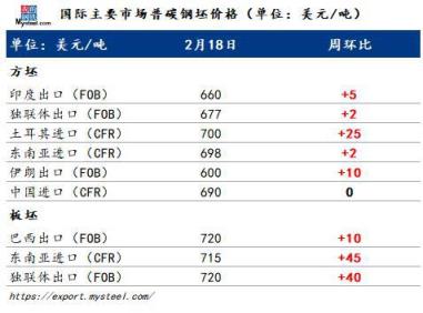 越南資源依舊維持高價位。本周越南報價700美元/噸FOB,較上周上漲15美元/噸。了解到,目前越南國內需求向好,出口方坯意愿不強。
