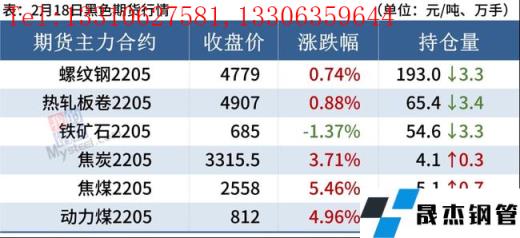 熱軋板卷:2月18日,全國24個主要城市4.75mm熱軋板卷均價5007元/噸,較上個交易日下跌3元/噸。據(jù)2月17日公布的數(shù)據(jù)來看,熱軋板卷周度產(chǎn)量及社會庫存均出現(xiàn)回升,當(dāng)前冬奧會對熱卷產(chǎn)量影響弱于預(yù)期,無縫厚壁鋼管廠家存在復(fù)產(chǎn)預(yù)期,另外受全國范圍內(nèi)疫情的影響,下游復(fù)工進度偏慢,需求尚未完全釋放。但前期原料端政策調(diào)控放緩,市場情緒基本釋放完畢,以及元宵節(jié)后多數(shù)企業(yè)生產(chǎn)將陸續(xù)恢復(fù),需求將逐漸啟動,價格下行空間收窄。綜合來看,預(yù)計下周熱軋板卷價格或?qū)⒕S持震蕩為主。
