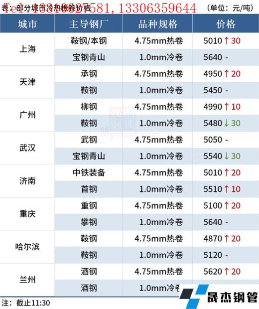 ◎樂從:22日早盤熱卷市場價格上漲10,4.75以上普柳燕4990-5000,2.75普5060-5210錳5170-5190。(單位:元/噸)
