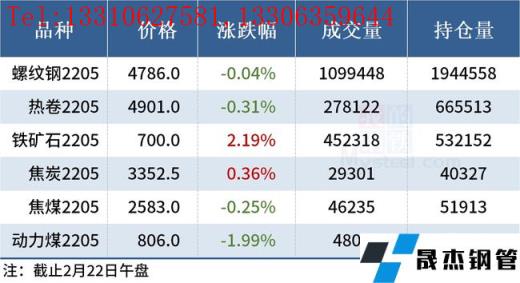 免責聲明:本網站(山東聊城晟杰無縫鋼管廠www.yztongfa.com)刊載的“2022年02月22日午報:鋼價多數上漲,黑色期貨高開低走”等均源于網絡,版權歸原作者所有,且僅代表原作者觀點,本文所載信息僅供參考。轉載僅為學習與交流之目的,如無意中侵犯您的合法權益,請及時聯系刪除。本網站刊登此篇文章并不意味著本站贊同其觀點或證實其內容的真實性,我們不對其科學性、嚴肅性等作任何形式的保證。如果侵犯了您的版權,請盡快聯系我們予以撤銷,謝謝合作!