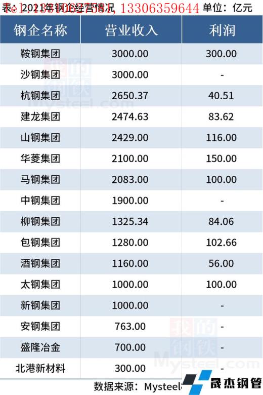 免責聲明:本網站(山東聊城晟杰無縫鋼管廠www.yztongfa.com)刊載的“16家鋼企2021年營收超2.7萬億元”等均源于網絡,版權歸原作者所有,且僅代表原作者觀點,本文所載信息僅供參考。轉載僅為學習與交流之目的,如無意中侵犯您的合法權益,請及時聯系刪除。本網站刊登此篇文章并不意味著本站贊同其觀點或證實其內容的真實性,我們不對其科學性、嚴肅性等作任何形式的保證。如果侵犯了您的版權,請盡快聯系我們予以撤銷,謝謝合作!